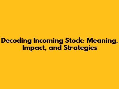 Decoding Incoming Stock: Meaning, Impact, And Strategies