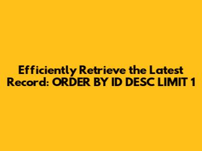 The ORDER BY id DESC LIMIT 1 clause is a powerful tool for efficiently retrieving the latest record from a database table. It's commonly used in various applications, from displaying the newest blog post to showcasing the latest product. By understanding how it works and keeping the performance considerations in mind, you can leverage this clause to build faster and more efficient applications. So go ahead, give it a try, and see how it can improve your database queries, guys! Remember to always test your queries and monitor their performance to ensure they're meeting your requirements.