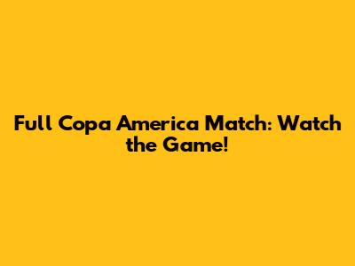 Full Copa America Match: Watch The Game!