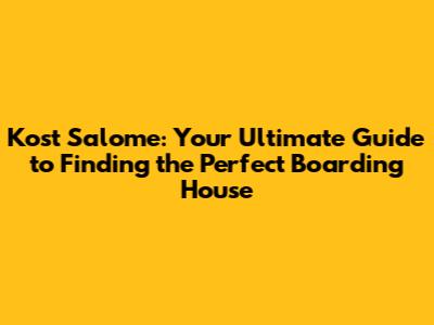 Hey there, future boarders! If you're on the hunt for a fantastic boarding house, you've probably stumbled upon "Kost Salome." Don't worry, we're here to break down everything you need to know about Kost Salome, from what it is to how to find the perfect one for you. So, grab a coffee (or your favorite beverage), settle in, and let's dive into the world of Kost Salome! We'll cover everything from the best locations to what amenities to look for, ensuring you find a boarding house that suits your needs and makes you feel right at home.