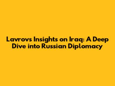 The Path to Peace: Lavrov's Vision for Iraq's Future