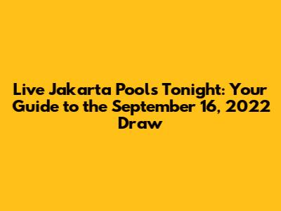 Hey there, lottery enthusiasts! Tonight, September 16, 2022, we're diving deep into the electrifying world of Live Jakarta Pools. This is your go-to guide for everything you need to know about the draw, from where to watch to what to expect. So, grab your lucky charms, get comfortable, and let's get started! For those who are new, welcome. For our regulars, welcome back. We’re all in this together, so let’s make it a fun night. Whether you're a seasoned player or a curious newcomer, this article is designed to give you all the information you need. We'll break down the essentials, offer some handy tips, and keep you in the loop with what's happening. Ready to unravel the mystery and excitement of the Jakarta Pools draw? Let's go!