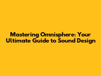 Mastering Omnisphere: Your Ultimate Guide To Sound Design