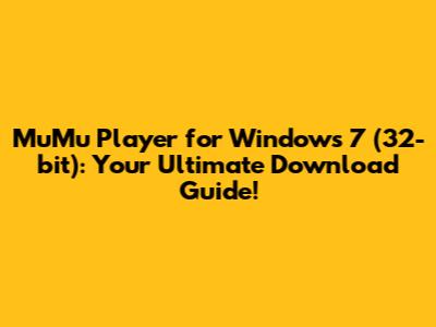 MuMu Player For Windows 7 (32-bit): Download Guide