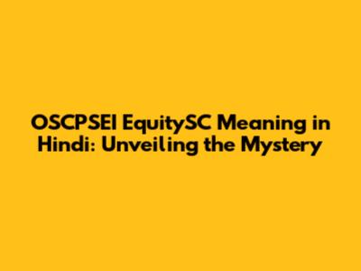 OSCPSEI EquitySC Meaning In Hindi: A Complete Guide