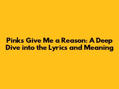 Pink's Give Me A Reason: Lyrics & Meaning