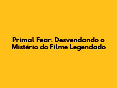 Primal Fear: Uma Análise Detalhada Do Filme Legendado