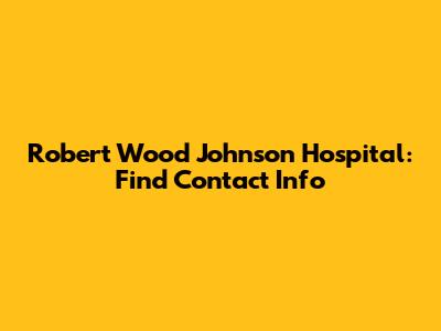 Robert Wood Johnson Hospital: Find Contact Info