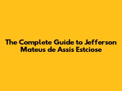The Complete Guide To Jefferson Mateus De Assis Estciose