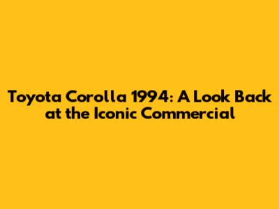 Toyota Corolla 1994: A Look Back At The Iconic Commercial