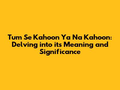 Tum Se Kahoon Ya Na Kahoon: Unveiling Its Meaning And Impact