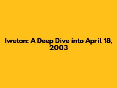 Alright, so the big question is: What exactly happened on April 18, 2003, in relation to Iweton? Without more details about Iweton, we're limited in what we can say. First things first, we'll need to figure out what Iweton actually is. Is it a person's name? A place? An event? Or something else entirely? To provide a meaningful response, we would definitely require more context. But, to illustrate the possibilities, let's explore a few hypothetical scenarios. Let's pretend Iweton is a town. On that date, there could have been a local festival, a significant change in local governance, or even a natural disaster. If Iweton is a person, then April 18, 2003, could be their birthday, or a day that marked a special achievement. On the other hand, if Iweton is an event, that date would have marked its execution. For instance, the event could have been the opening of a building or a special gathering of some sort. The possibilities are endless, and this is where the fun begins. Let's try to construct a timeline. We could then cross-reference it with general historical events to see if anything lines up. Maybe it was a significant day for Iweton folks and they had a parade or a special celebration! Maybe it was just another day, with nothing particularly special happening. Without information, we can only speculate. But speculating is, after all, part of the fun of historical research, right?