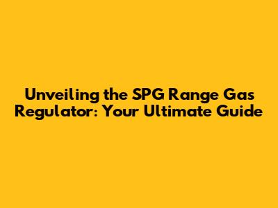 Unveiling The SPG Range Gas Regulator: Your Ultimate Guide