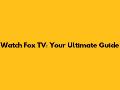Watch Fox TV: Your Ultimate Guide
