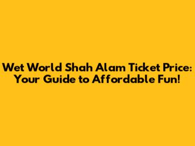 Breaking Down Wet World Shah Alam Ticket Prices